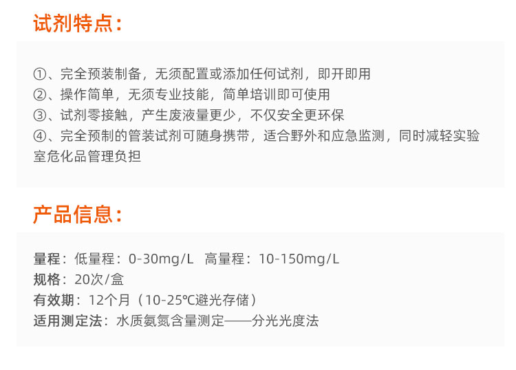 無需另配試劑,產(chǎn)生廢液少,與試劑零接觸,安全放心使用,簡化操作過程,即開即用,極大限度地縮短分析時(shí)間,提高工作效率