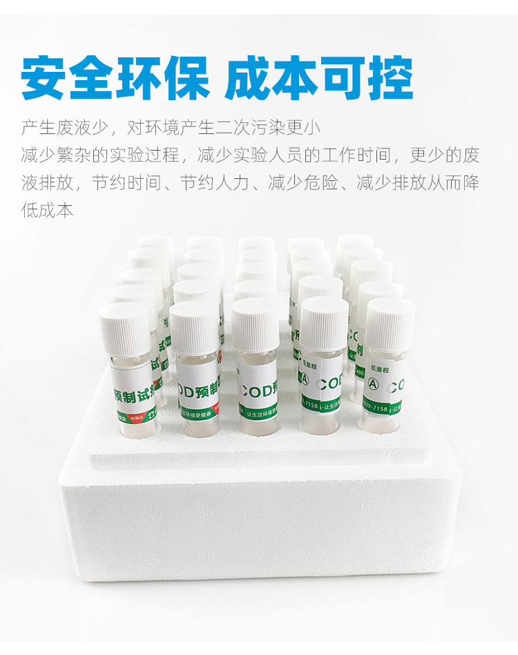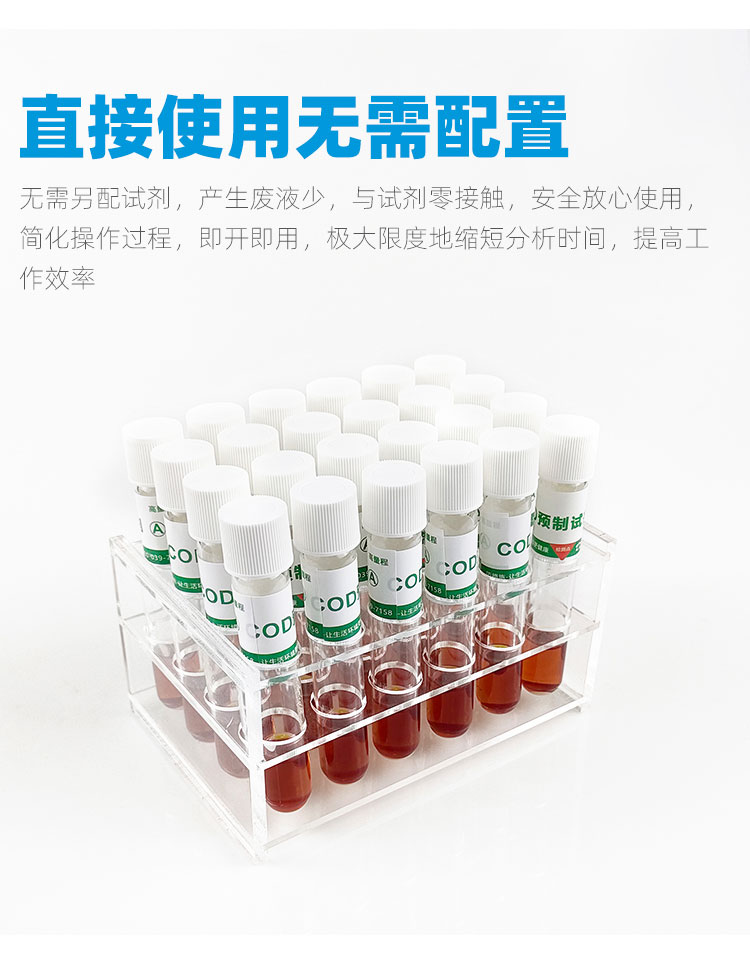 無需另配試劑,產(chǎn)生廢液少,與試劑零接觸,安全放心使用,簡化操作過程,即開即用,極大限度地縮短分析時(shí)間,提高工作效率