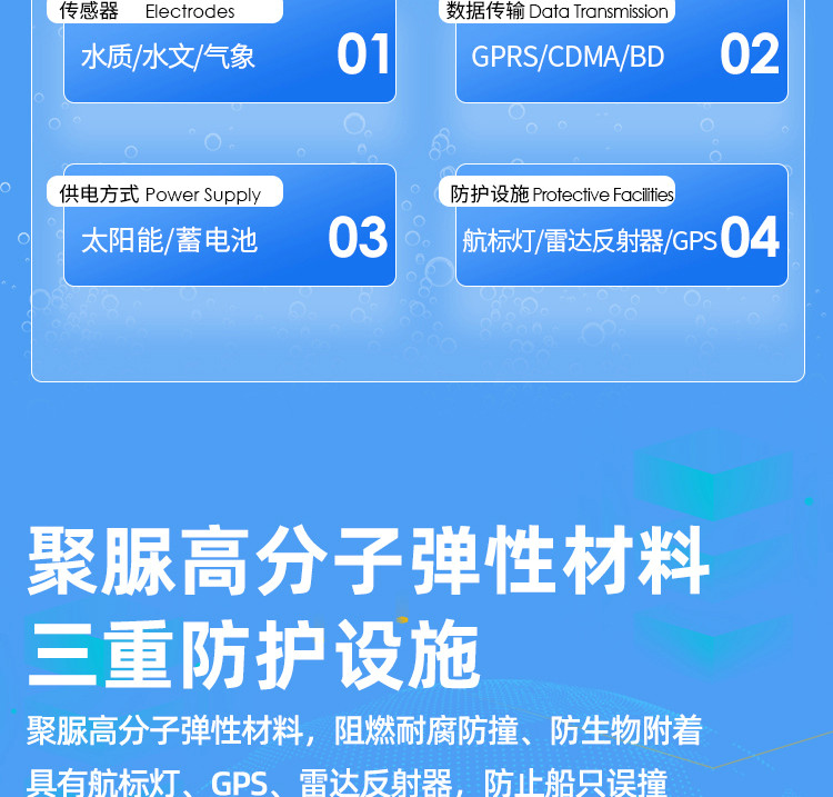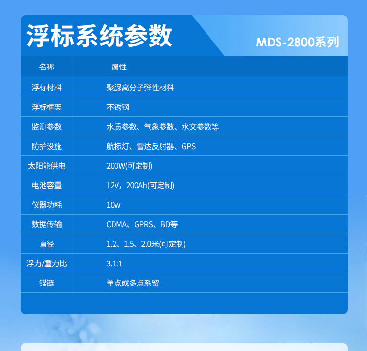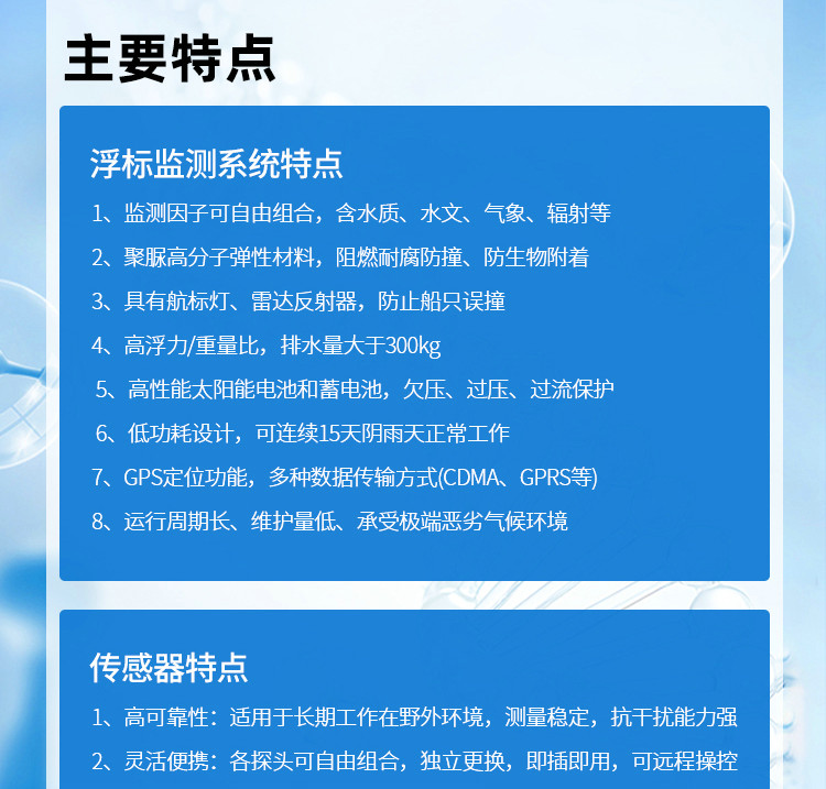 MDS-FBHY2301海洋浮標水質監(jiān)測站,是一款以浮標為載體,集材料科學、傳感器技術、數(shù)傳技術為一體的水質監(jiān)測系統(tǒng)。