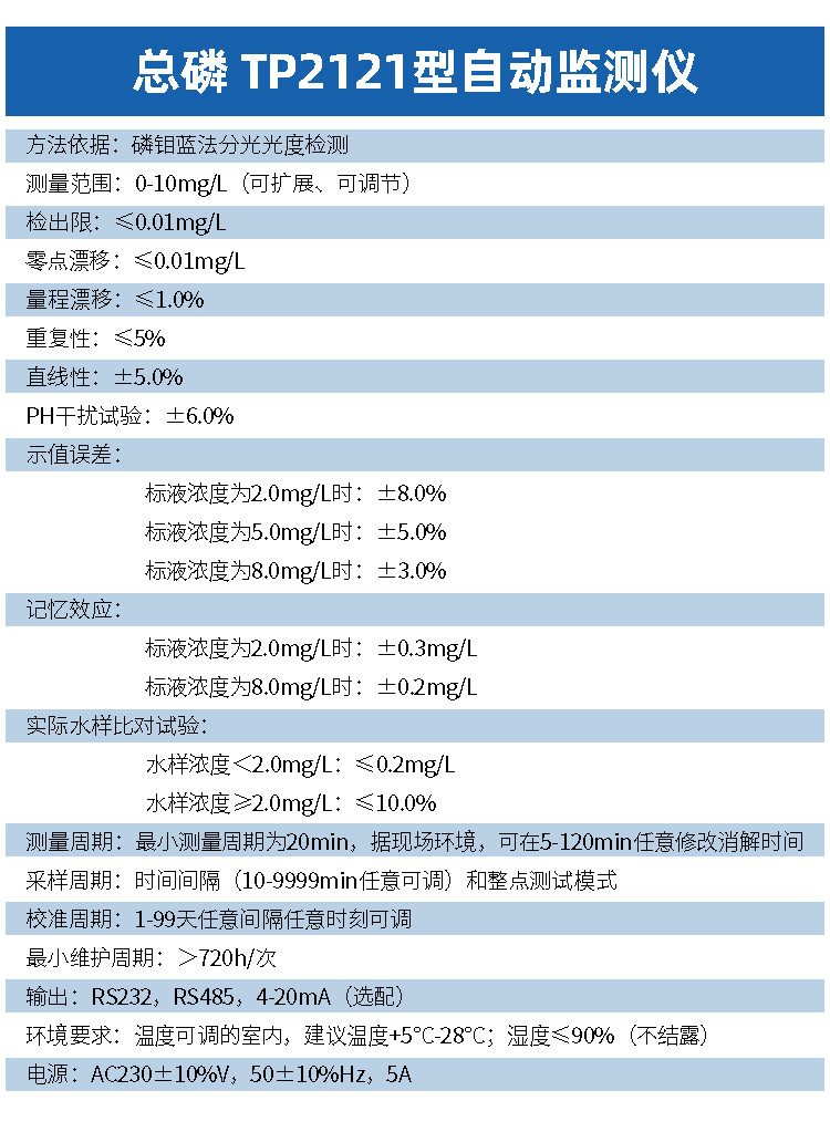 【產品概述】 本款MDS-830在線總磷檢測儀采用國際先進光度檢測技術,專為水質總磷濃度精準監測設計,可廣泛應用于污水處理、工業排放管控及環境監測領域。設備符合國家環保標準(HJ 670-2013),支持24小時無人值守運行,實現水質總磷指標的實時檢測與超標預警,助力企業高效應對環保監管。 【功能特點】 ◆ 高精度檢測:采用鉬酸銨分光光度法,檢測精度達±2%,最低檢出限0.01mg/L ◆ 智能控制系統:搭載自動校準、溫度補償功能,有效降低環境干擾 ◆ 多接口兼容:支持4-20mA/RS485/Modbus輸出,無縫對接PLC及環保監管平臺 ◆ 低維護設計:模塊化結構+自清洗系統 ◆ 數據追溯功能:內置10萬條存儲容量,支持歷史數據查詢與報表導出 【應用領域】 ? 市政污水處理廠進出水監測 ? 電力/化工/制藥行業循環水系統 ? 地表水/飲用水源地自動監測站 ? 環保部門污染源在線監控網絡 ? 高校及科研機構實驗室分析 【技術參數】 - 測量原理:鉬酸銨紫外分光光度法 - 量程范圍:0-1/10/25/50mg/L,可擴展 - 比對誤差:±0.05mg/L(TP≤0.1mg/L);±10%(TP>0.1mg/L) - 示值誤差:≤±5% - 重復性:≤±5% - 直線性:≤±5% - 零點漂移:≤±5%F.S(24h內) - 量程漂移:≤±5%F.S(24h內) - 測量周期:最小測量周期為30分鐘/次,可在5~60min任意修改消解時間 - 儀器接口:RS232,RS485,RJ45(以太網)、4-20mA輸出、無線網絡反控(選配) 【相關推薦】
